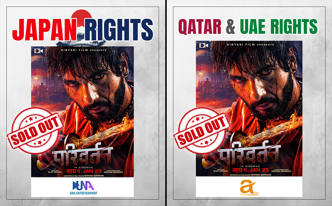 सबस्त इन्टरटेनमेन्ट,काठमान्डौ – निर्देशक बिजय केरुङ निर्देशित बहुप्रतिक्षित नेपाली चलचित्र ‘परिवर्तन’ विदेशी प्रदर्शन अधिकार धमाधम बिक्री हुन थालेका छन्। टिजर रिलिजसँगै कतार,यूएई र जापानमा विक्री भएको हो। कतार र युएईका लागि प्रदर्शन अधिकार अशिष इन्टरटेनमेन्टले खरिद गरेको हो भने जापान अधिकार युना इन्टरटेनमेन्टले किनेको निर्माता दीपक सिवाकोटीले बताए।