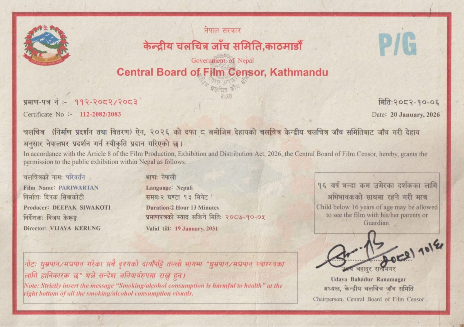 उनका अनुसार केहि डर लाग्दा दृश्यका कारण १६ वर्षमुनिका दर्शकले चलचित्र हेर्नका लागि अभिभावक चाहिएको हो।