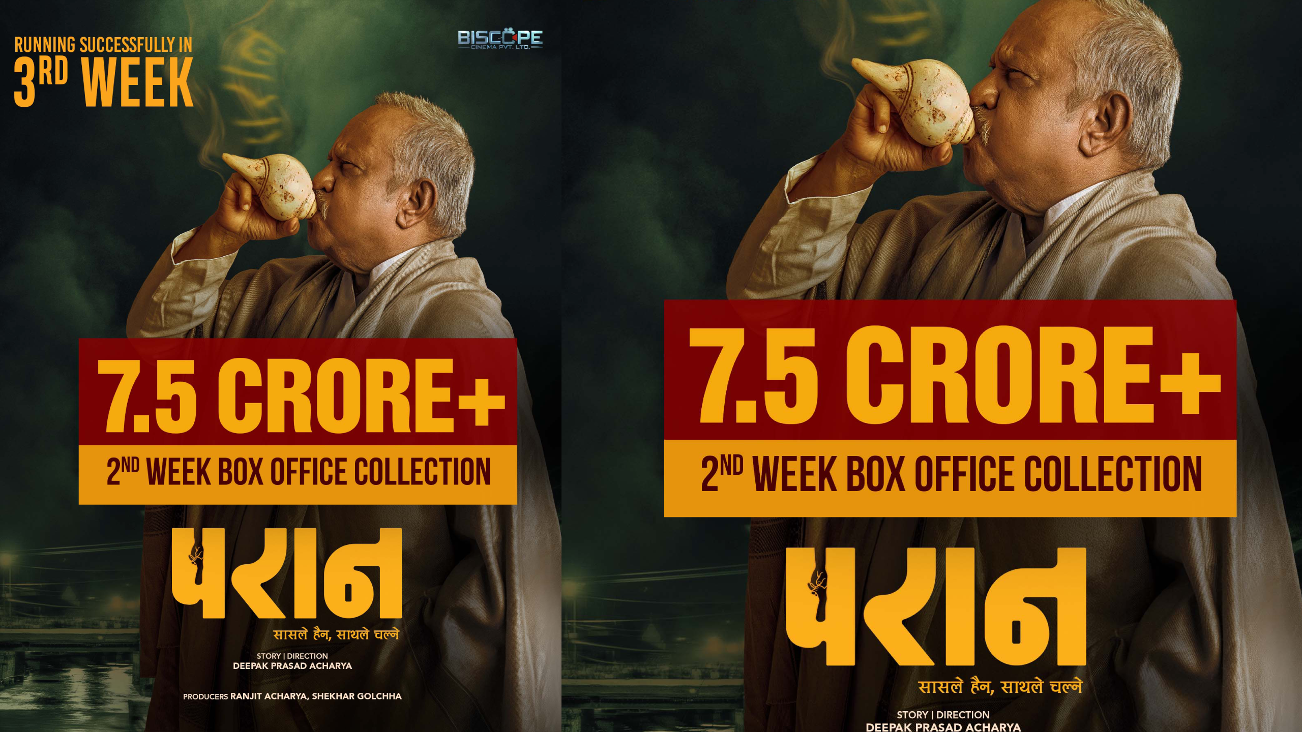 सबस्त इन्टरटेनमेन्ट,काठमान्डौ – वक्सअफिस सरप्राइज बनेर आएको चलचित्र ‘परान’ आफ्नो अभूतपूर्व रिलिजको तेस्रो सातामा प्रवेश गरेको छ। तेस्रो साता प्रवेश गर्दै गर्दा यो भावनात्मक पारिवारिक चलचित्रले दुई सातामा ७ करोड ५० लाखमाथिको ग्रस व्यापार गर्न सफल भएको छ। आफ्नो प्रदर्शनको तेस्रो सातामा चलचित्रले प्राप्त शो संख्यासमेत